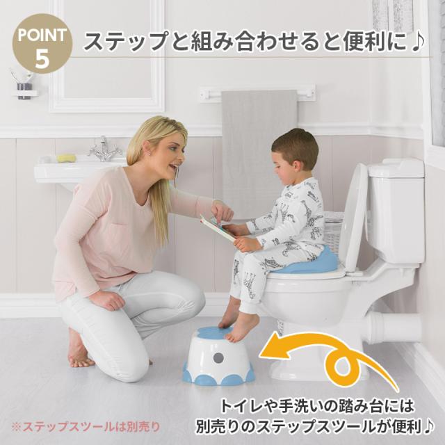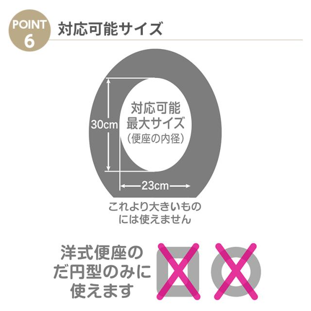 【特徴】本製品は洋式トイレの便座(大人用)に置いて使用する幼児用便座です。