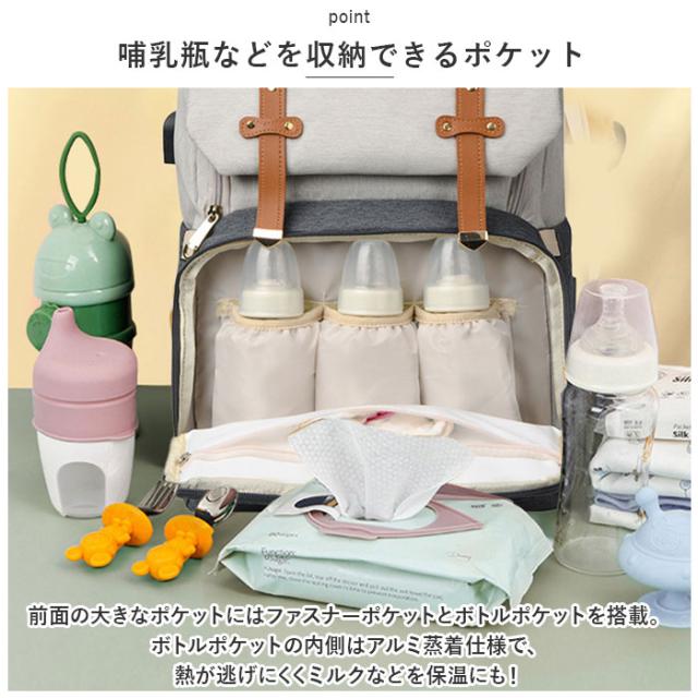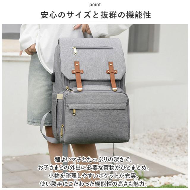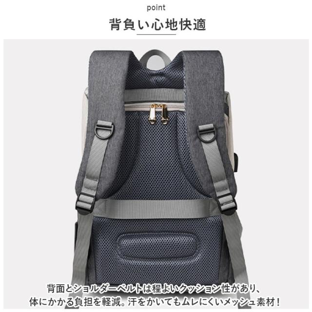 | 商品説明 | ・色んなシーンで大活躍◎たっぷり入って機能的なマザーズバッグ新登場。 【安心のサイズと抜群の機能性】 ・程よいマチとたっぷりの深さで、お子さまとの外出に必要な荷物がひとまとめ。小物を整理しやすいポケットが充実、使い勝手にこだわった機能性の高さも魅力。 【うれしい2ルーム仕様】 ・収納ルームは2つに分かれており、荷物が増えてもごちゃつかず取り出しがスムーズ。 【収納力のあるメインルーム】 ・メインルームはマグネットフラップ&ラウンドファスナーで、中身がこぼれ落ちを防ぎつつ大きくオープン。お子さまの着替えもラクラク入り、整理整頓しやすいポケットも多数装備。 【ミニノートPCやタブレットが入るサブルーム】 ・背面のサブルームは、左右どちらからも開くダブルファスナー式。クッション材で電子機器を保護してくれるから、持ち運びも安心。(※メインルームのクッションポケットにもノートPCなどを収納可能。) 【哺乳瓶などを収納できるポケット】 ・前面の大きなポケットにはファスナーポケットとボトルポケットを搭載。ボトルポケットの内側はアルミ蒸着仕様で、熱が逃げにくくミルクなどを保温にも! 【サッと取り出せる外ポケット】 ・その他にも4つの外ポケット付き。使用頻度の高いスマホなどを収納したり、サイドゴムポケットには折りたたみ傘やペットボトルを。片側はティッシュなどをサッと取り出せる穴付き。 【スマホの充電もラクラク】 ・外側サイドにUSBポートを搭載。スマホを充電しながらの移動も快適♪(※USBケーブルが付属。メインルームの収納スペース内側、左側のサイドポケット内から装着してください。) 【背負い心地快適】 ・背面とショルダーベルトは程よいクッション性があり、体にかかる負担を軽減。汗をかいてもムレにくいメッシュ素材! 【背面キャリーオン仕様】 ・背面のベルトを、キャリーケースのバーに通して使えるキャリーオンタイプ。旅行などにもおすすめ。 【ちょっとの雨なら大丈夫】 ・表面に水滴や汚れを弾く撥水加工済みで、お手入れも拭き取るだけ。(※完全防水ではありません。) |