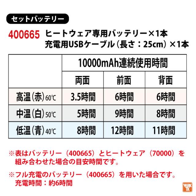 ATACK BASE 70000 ハイブリットヒートベスト Wスイッチバッテリーセット バッテリー 充電USBケーブル付き