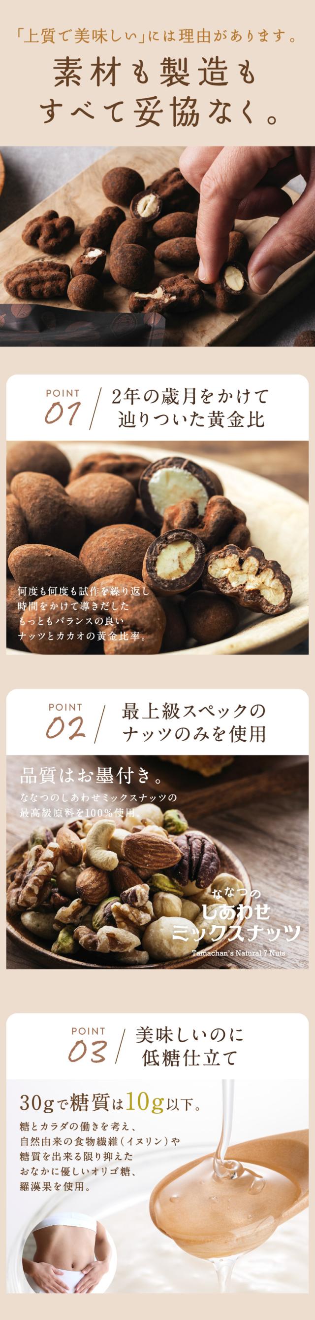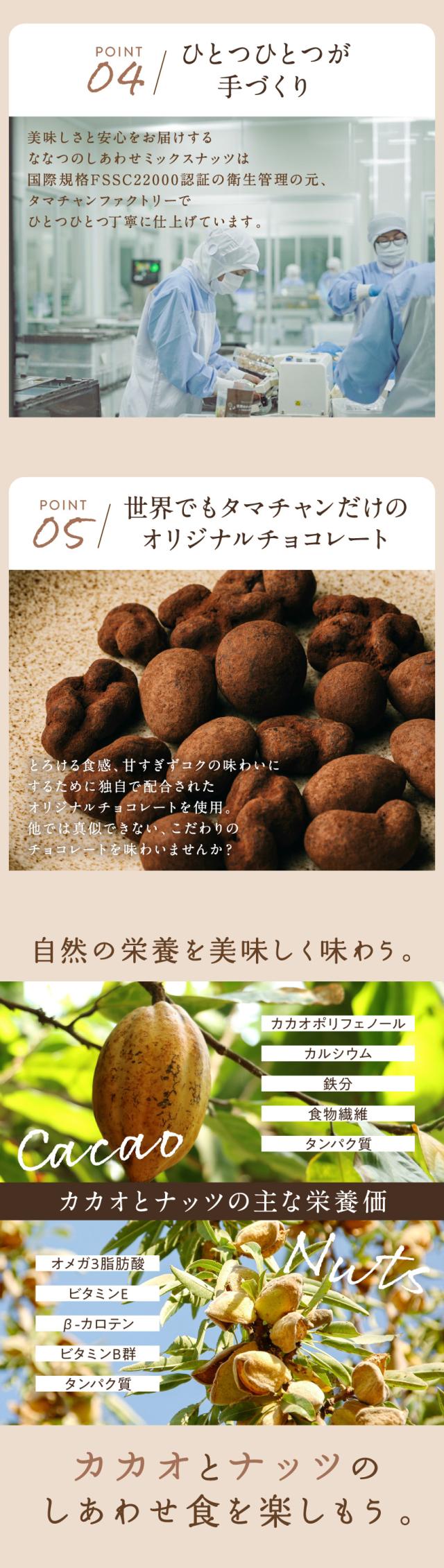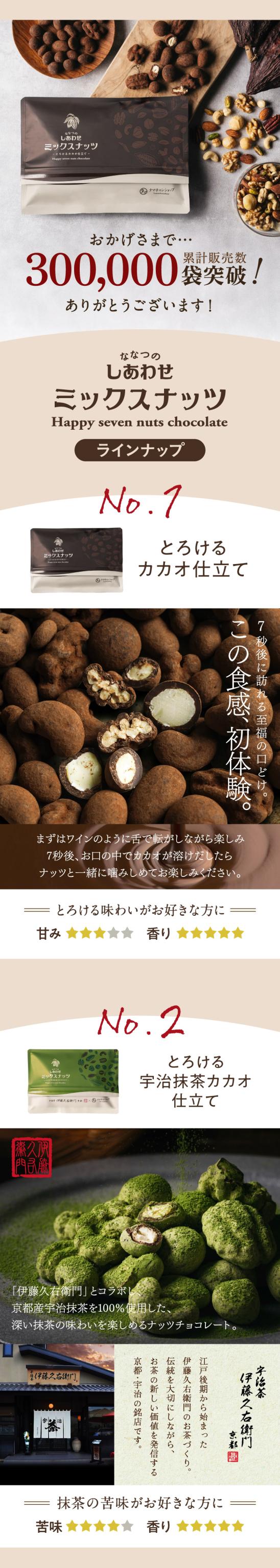 ななつのミックスナッツチョコ (カカオ)180g、ななつのミックスナッツチョコ(宇治抹茶) 160g