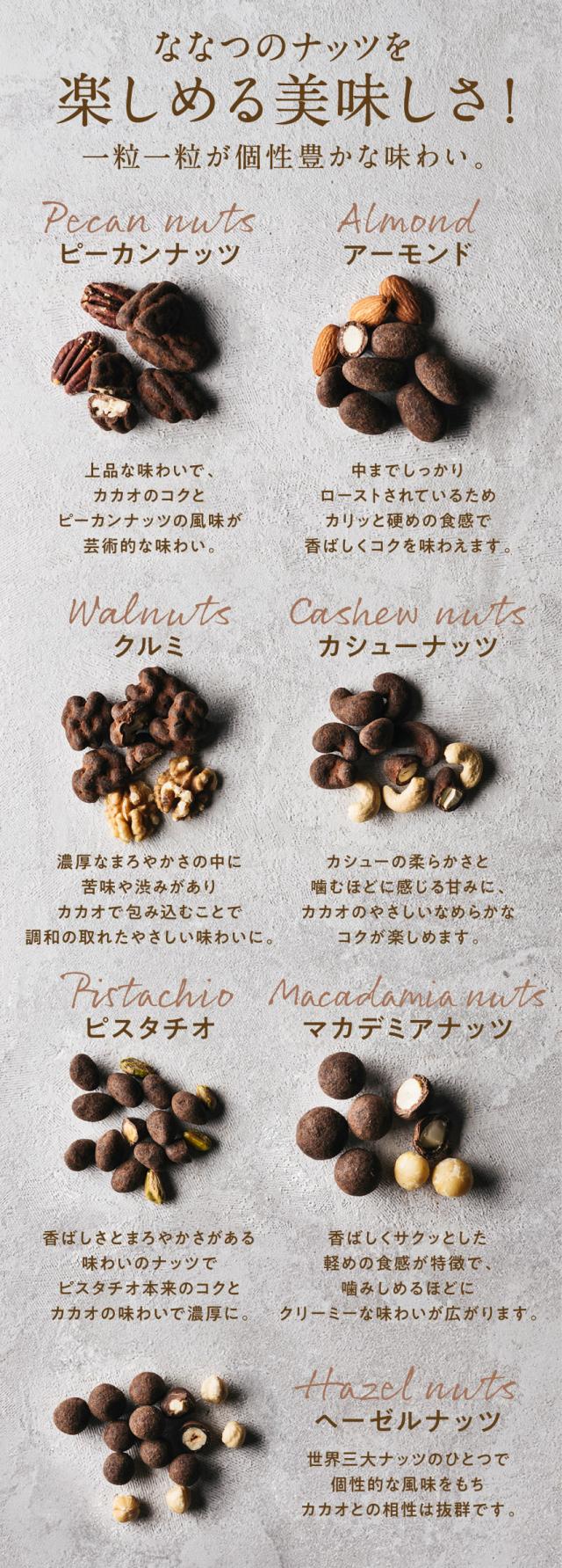 ななつのナッツチョコ (カカオ/宇治抹茶) >>