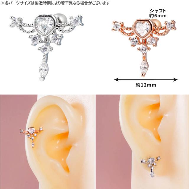 ハート ジュエル シャンデリア ストレートバーベル 14G 16G 18G 20G サージカルステンレス ジルコニア ヘリックス 軟骨 ボディピアス