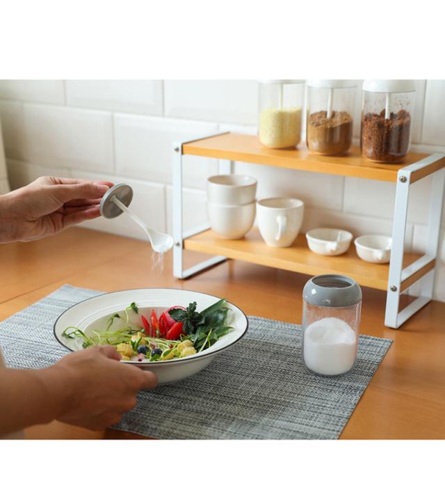 砂糖 、塩、黒胡椒、胡椒、唐辛子、七味などの調味料をしっかりに収納できます。