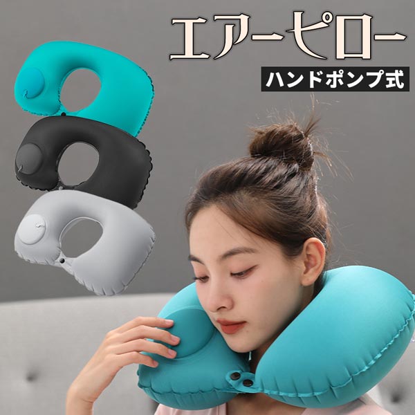 3カラー エアー ピロー ハンドポンプ式 首枕 ネックピロー 旅行 トラベル コンパクト 携帯枕 持ち運び 膨らませる 快適 車 新幹線 飛行機 U字 送料無料