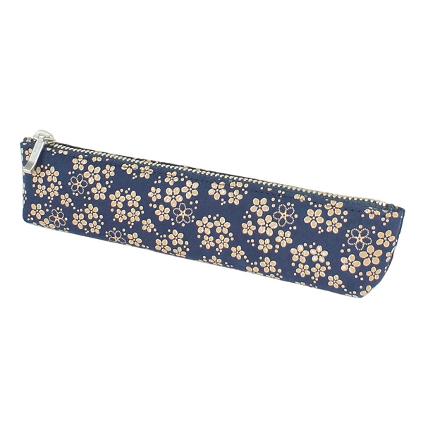 印伝 甲州印伝 印傳屋 上原勇七 ペンケース 筆箱 筆入れ 4608 忘れな草 紺地×白漆 鹿革 本革 レザー シンプル 花柄 ブランド 冬ギフト バレンタイン 贈り物 YM01