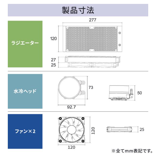 ラジエーター:約 120(W) × 277(D) × 27(H) mm