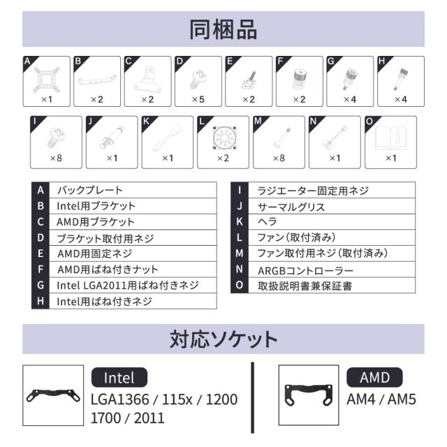 水冷CPUクーラー 120mm×2基 ARGB LED内蔵ヘッド&チューブ