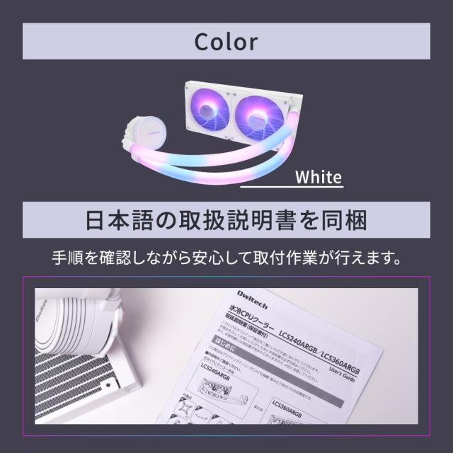 ホワイト デイジーチェーン 配線すっきり アルミニウム製ラジエーター インフィニティミラー 回転ヘッド アドレサブルRGBコントローラー 3年保証 ASRock Polychrome Sync ASUS Aura Sync GIGABYTE RGB Fusion MSI Mystic Light Sync 240mm 銅製ベースプレート しっかり冷却 CPUクーラー ゲーミング owltech オウルテック おうるてっく