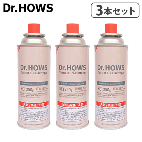 ドクターハウス トゥインクル カセットガス 250g×3本セット Dr.HOWS TWINKLE CASSETTEGAS ガスボンベ カセットボンベ かわいい おしゃれ ピンク【12時迄のご注文は当日発送】