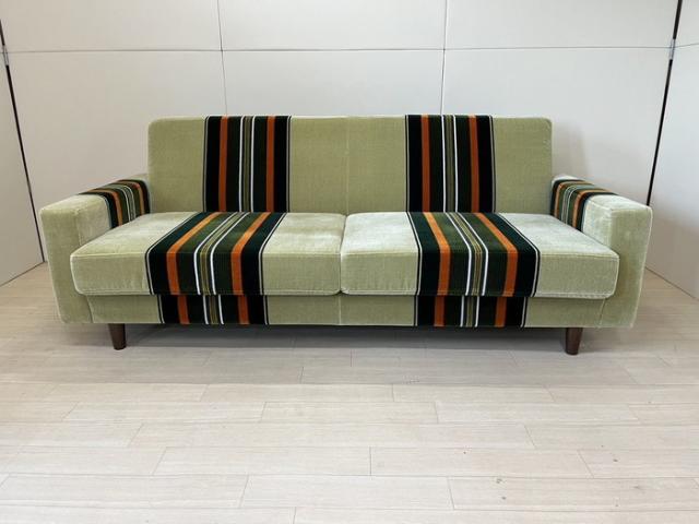 ソファ LOW ロー 2.5P 2.5人掛け 別注モデル 古民家 ヴィンテージマンションにオススメ ダブル トリプル リプロダクトモケット ライト グリーン ストライプ オレンジ ブラウン コーデュロイ 日本製 ma-low25p 店舗 カフェ ラウンジ ロビー ホテル 法人 ソファ ソファ ソフ