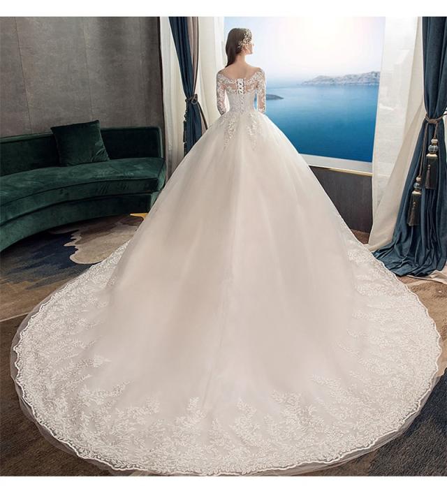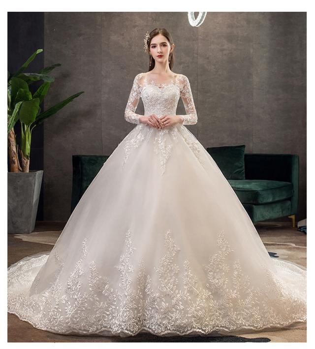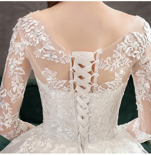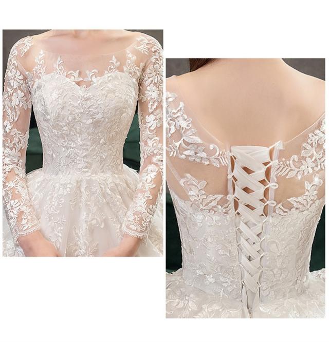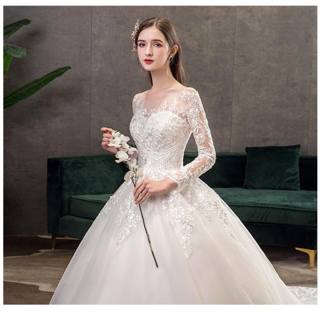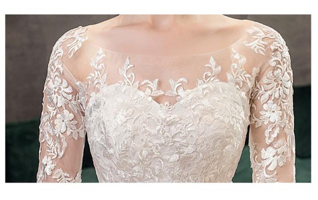 ウエディングドレス 結婚式 花嫁ドレス 披露宴 ロングドレス シンプル 長袖 おしゃれ レースドレス 二次会ドレス エレガント 長袖 レース花柄 ロングワンピース 演奏会 フォーマル イブニングドレス 編み上げ レース 刺繍 drs7612