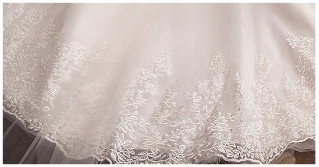 このドレスは精美なレース刺繍花を使用、高貴な気質を与える、クラシックとファッションを組み合わせます。上半身の刺繍とイミテーションパールの組み合わせになっており、光が当たるとキラキラと煌めき、ゴージャスな雰囲気を演出。
