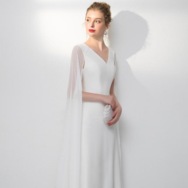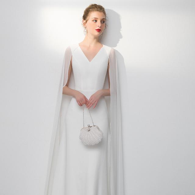 ウエディングドレス Aラインドレス シンプルドレス ホワイト 二次会 ロングドレス Vネック ワンピース 花嫁ドレス コンサート 披露宴 演奏会 発表会 ロッグトレス 旅行撮影ドレス 前撮り 後撮り パーティー drs7619