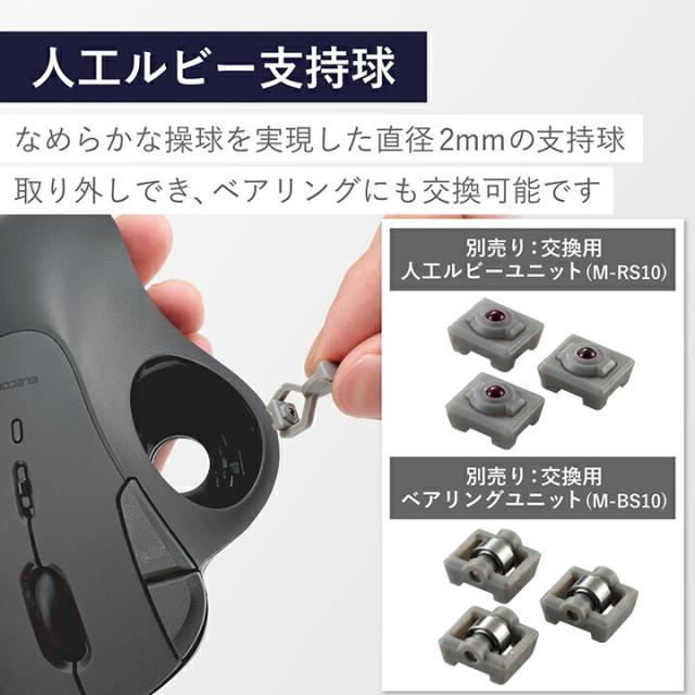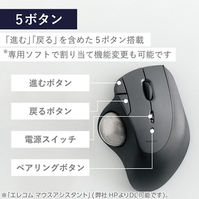 エレコム トラックボール マウス Bluetooth 5.0 36mmボール 親指 5ボタン IST 人工ルビー支持 ワイヤレス ブラック┃M-IT10BRBK