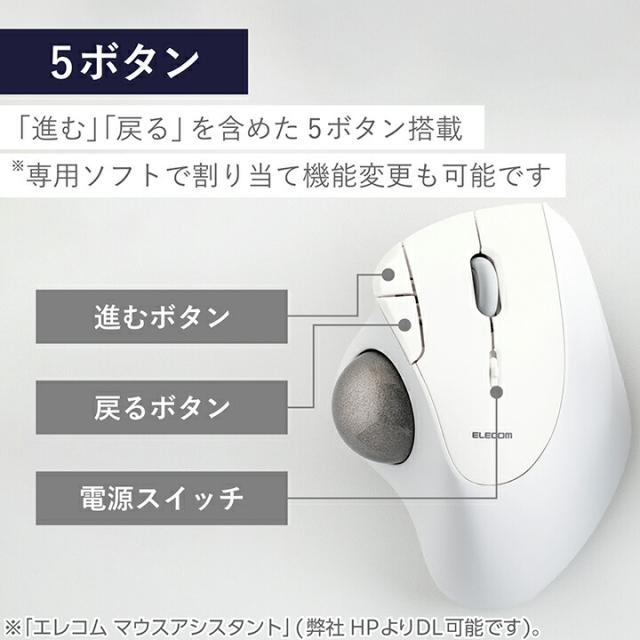エレコム トラックボール マウス 無線2.4GHz 36mmボール 親指 5ボタン IST ベアリング支持 無線 ワイヤレス ホワイト┃M-IT11DRWH