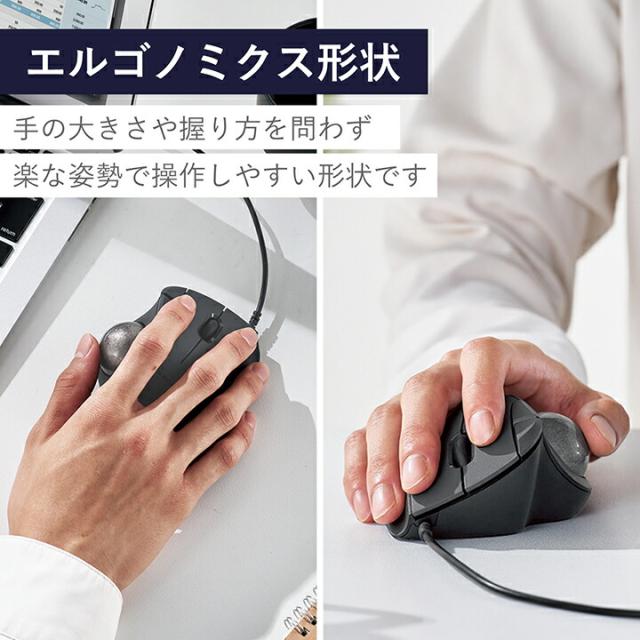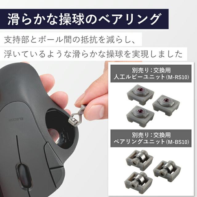楽な姿勢で操作できるエルゴノミクスデザインと、広範囲かつ繊細に動かせる36mm大型ボールを採用した親指操作タイプのトラックボール“IST”。宙に浮くような、なめらかな操球を実現した、ベアリング支持の有線モデル。![]() ■楽な姿勢で操作できるエルゴノミクス形状と圧倒的になめらかな操作性を実現した、親指操作タイプのトラックボール“IST”。 ■握らず自然な手の形で使えるエルゴノミクスデザインを採用。手の大きさや握り方を問わず、手になじむ形状です。 ■手首に負担のかからない角度なので、長時間の作業でも快適です。 ■支持ユニットにはミネベアミツミ社製高性能ベアリングを採用。摩擦による抵抗が減るため、空中に浮いているような、なめらかな操球を実現しました。 ■ボール表面を擦らないので、支持ユニットにゴミが集まりにくく、長期間メンテナンスフリーでご使用いただけます。 ■支持ユニットは簡単に取り外し可能で、ベアリングはもちろん、人工ルビーにも交換可能です。 ■※交換用のベアリングユニット(M-BS10)及び人工ルビーユニット(M-RS10)は別売です。 ■裏面の穴から簡単にボールを取り外し・交換が可能で、ボールや内部の支持ユニットのメンテナンスがしやすい設計です。 ■親指にフィットする直径36mm大型ボールを採用し、一度の操作でポインターを広範囲かつ繊細に動かせます。 ■※交換ボール(M-B10SV)は別売です。 ■Webブラウザやフォルダの操作時に便利な「進む」、「戻る」ボタンを含めた5ボタンを搭載しています。 ■ボタンの機能割り当ては、無料でダウンロードできる「エレコム マウスアシスタント」を利用して変更可能です。 ■電池交換が不要で、パソコンのUSBポートにケーブルを差すだけですぐに使える有線接続タイプです。 ■自社環境認定基準を1つ以上満たし、『THINK ECOLOGY』マークを表示した製品です。 ■廃棄物削減に取り組み、製品に同梱する取扱説明書等をペーパーレス化した製品です。 ■環境保全に取り組み、製品の包装容器におけるプラスチック重量を、社内基準製品より20%以上削減した製品です。 ■安心してご利用いただける保証期間「2年間」製品です。 ![]() ■コネクター形状:USB-A プラグ ■接続方式:USB有線 ■対応機種:USBポートを装備したWindowsOS、macOS、 ChromeOS 搭載機 ■対応OS(Windows):Windows 11/10 ■対応OS(macOS):macOS Ventura 13 ■対応OS(その他): ChromeOS ■読み取り方式:IR LED ■センサー分解能:500DPI ■ボタン数:5個 ※ホイールボタン含む ■ホイール数:1個 ■ボール径:直径約36mm ■支持球種類:ベアリング ■電源:USBバスパワー ■ケーブル長:約1.5m ■外形寸法:幅約96mm×奥行約126mm×高さ約52mm ■重量:約175g ※ケーブル含む ■内容物:トラックボール本体×1台、取り外しツール×1本 ■VCCI:Class B対応 ■カラー:ブラック ■保証期間:2年間 |