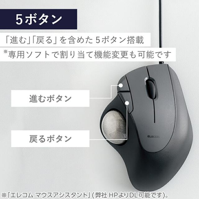 エレコム トラックボール マウス 有線 36mmボール 親指 5ボタン IST ベアリング支持 ブラック┃M-IT11URBK