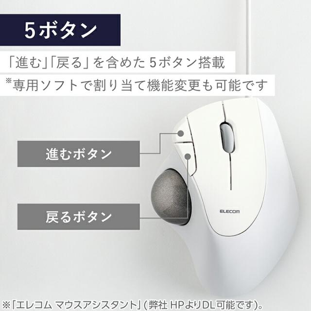エレコム トラックボール マウス 有線 36mmボール 親指 5ボタン IST ベアリング支持 ホワイト┃M-IT11URWH