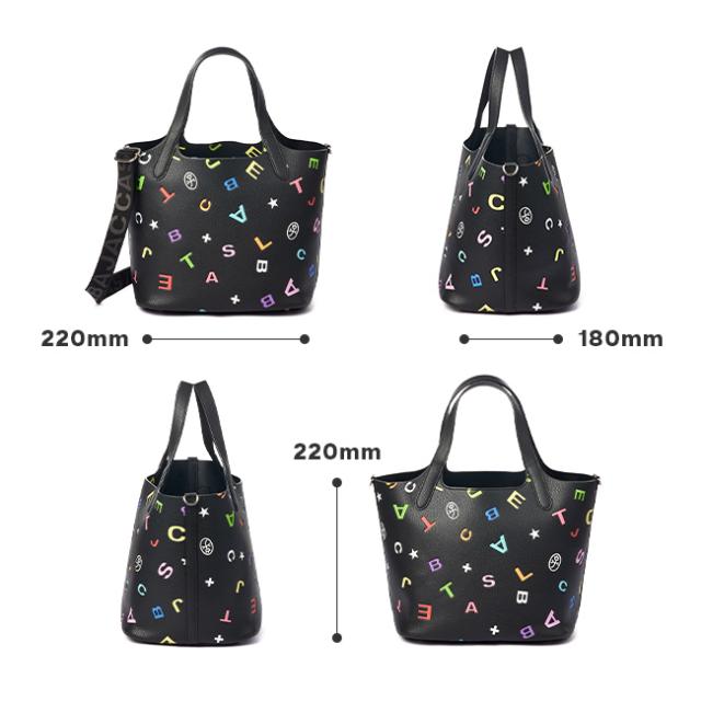 | CASTELBAJACのロゴがランダムに散りばめられた新しいモノグラムをマルチカラーで表現。厚みのあるシュリンクPVCに2次加工(型押しとプリント)し、グレード高く仕上げた使いやすいシンプルトート。コロンとして可愛らしいフォルムですが、シンプルな美しさを感じられるのも魅力的です。 財布、携帯、ポーチ、ペットボトルなど、必要最小限の荷物を収納でき、ちょっとしたお出かけにぴったりなサイズです。 |