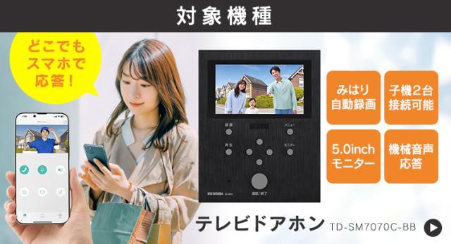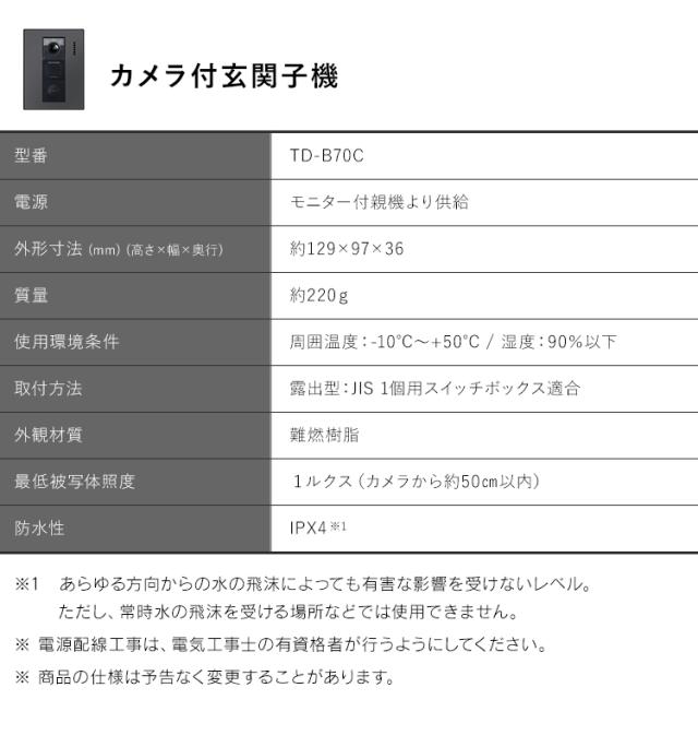 テレビドアホン 録画機能 インターホン ドアホン 防犯 交換 別売り 子機 単品 自動録画 外でも 外から スマホ対応 IoT 防犯カメラ 監視カメラ WiFi モーション検知 動体検知 TD-SM7070C-BB用 親機TD-M70 玄関子機 ブラック アイリスオーヤマ TD-B70C-B 送料無料