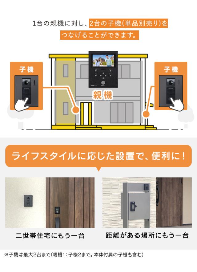 1台の親機に対し、最大2台の子機(単品別売り)をつなげることができます。