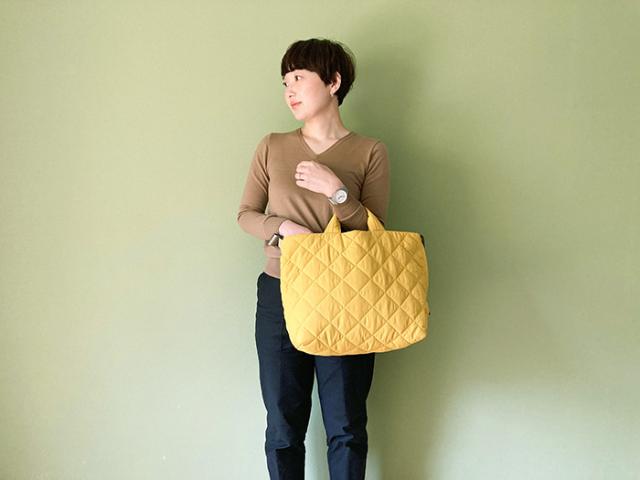 | 商品説明 | ・まいにち使えて飽きのこない機能的なバッグ。 ・汚れや水に強い「撥水加工」。雨の日も晴れの日もデイリーに使える頼もしいトートです。 ・軽くて丈夫なナイロン生地に、菱形(ダイヤモンドシェイプ)キルティング加工を施しました。中綿入りで布地にプクッと立体感が出て、おしゃれでかわいい仕上り。 ・ベーシックカラーにちらりと見えるストライプ柄の裏地が程よいアクセントに! 【にぎりやすい持ち手) ・ウレタン入りのしっかりしたつくりで手への負担が少なく、しっかりと荷物を支えます。 【両手フリーでアクティブに】 ・ショルダー付き(取り外し不可)で、トートバッグ・ショルダーバッグの2way仕様で使えます。用途に合わせて手持ち、肩掛け、斜め掛けと使い分けができます。 ・A4サイズの書類、ランチボックス、ボトル、コスメポーチなどもらくらく収納。13インチのノートPCが収納可能で、ビジネスバッグとしても重宝します。 ・ファスナー付きルーポケットには、長財布やスマホなどを入れおけて便利です。 ・体に寄り添うやわらかさがあり、使いやすい触り心地。どんなファッションにも合わせやすく、季節を問わず大活躍です。 |