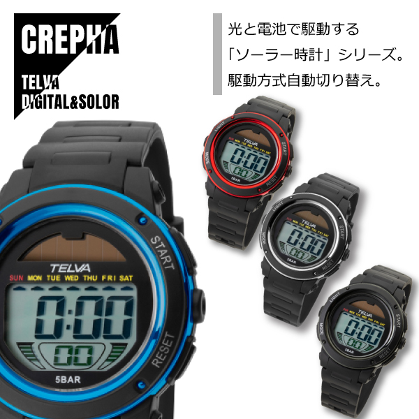 CREPHA クレファ TELVA テルバ デジタル&ソーラーウオッチ 4色対応 TE-D192 腕時計