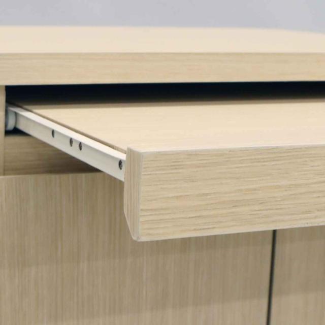 天板下には、便利なスライドトレー付きです。使わない時はスッキリコンパクトに、必要な時に引き出してお使いいただけます。