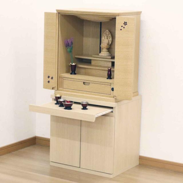 仏壇キャビネット 両開き スライド棚 幅50cm ( 仏壇台 キャビネット 棚 収納 コンパクト 家具 完成品 現代仏壇 リビング仏壇 リビング 膳引き 仏具 ナチュラル ブラウン )