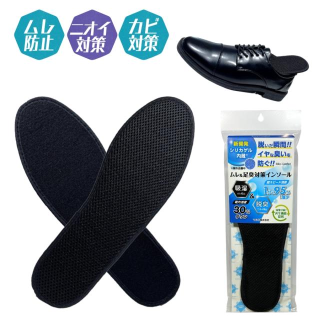 【シリカコンフォート ムレ&足臭対策インソール ブラック】靴の臭い 足の臭い ムレ対策 臭い対策 シリカゲル 吸湿 繰り返し使用 消臭 脱臭 ブーツ スニーカー 革靴 ブーツ 22.5cm〜29.0cmまで対応