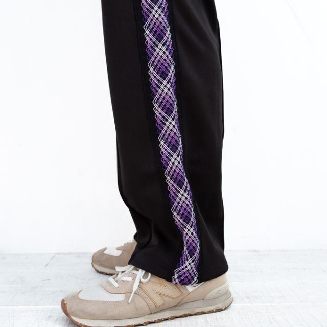 やや肉厚のポリエステルジャージを使用したトラックパンツ。