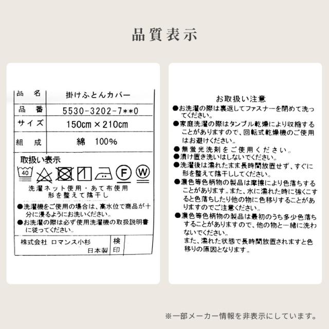 [ keyword | ロマンス小杉 クリムス(R)ソフト 掛け布団カバー シングルロング 約150×210cm 掛けカバー 日本製 国産 ロマンス 布団カバー 綿100% ]