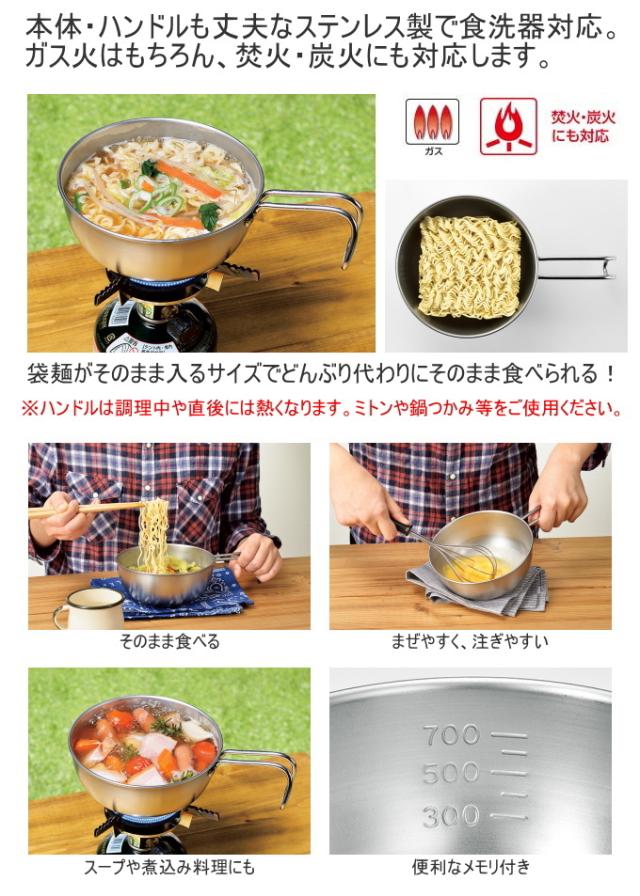 金属加工の街、新潟県燕市で作られた信頼の日本製。 シェラカップ・ボウル15cmと手付きザル・レザーハンドルカバーのセットです。 シェラカップ・ボウル15cmは本体・ハンドルも丈夫なステンレス製で食洗器対応。 ガス火はもちろん、焚火・炭火にも対応します。 袋麺がそのまま入るサイズでどんぶり代わりにそのまま食べられる。 スープや煮込み料理にも。 水切りや湯切りに便利な手付きザル付き。 ハンドルが熱くなりがちな、手付きボウル、フライパン16cm〜20cmに使えるレザーハンドルカバーです。 抜け止め用ヒモ付き。 |