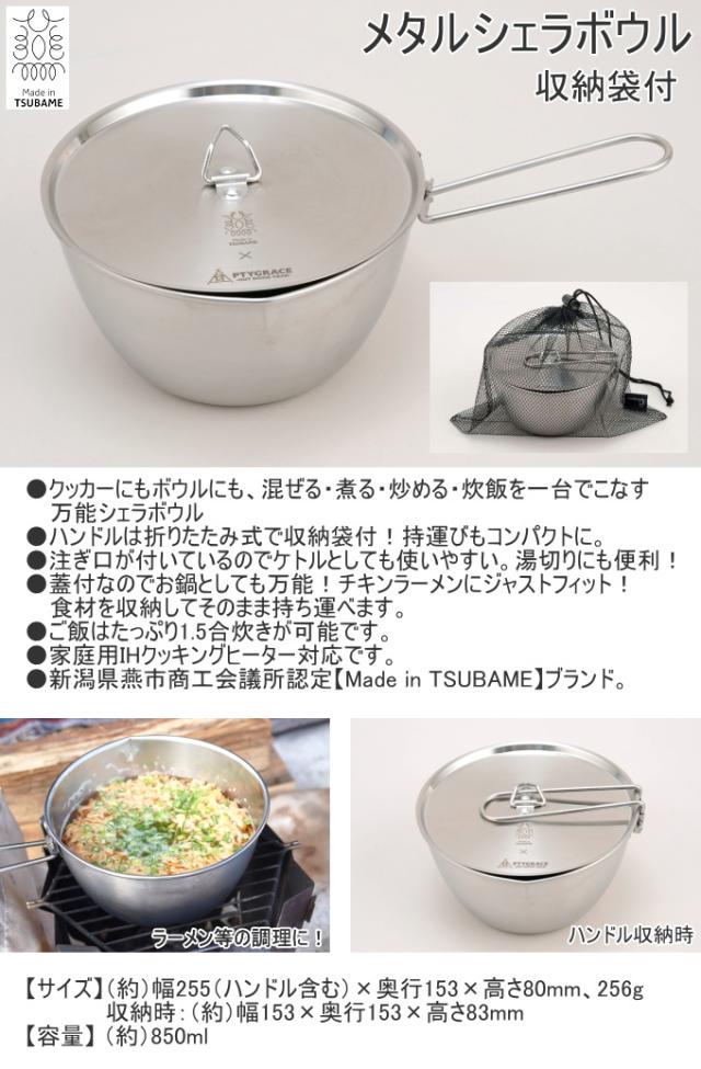メタルシェラボウル 850ml PY-SIE040 日本製 ステンレス シェラカップ ボウル シェラボウル 鍋 炊飯 キャンプ アウトドア 調理 調理器具 クッカー ケトル 便利 IH 対応 Made in TSUBAME