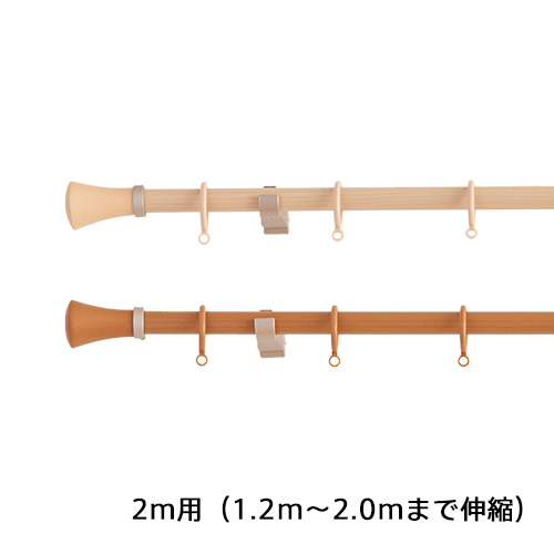 カーテンレール シングル 装飾レール 木目調 伸縮式 おしゃれ 天然木のデザインキャップ TOSO トーソー 「ミディオ」 2.0mシングルセット