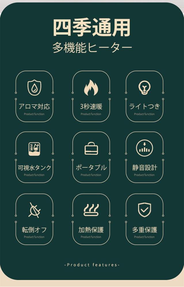 【多重保護・持ち手付き】 ABS難燃性外殻に加え、過熱保護、転倒自動オフ機能を備えて、安全性も大幅にアップできました。ハンドル付きのコンパクトデザインで、女性にも面倒なく片手で持ち運べます。
