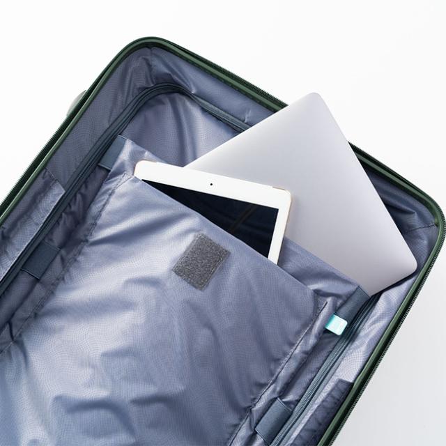 | 人気の“デカかるEdge”より、フロントオープンタイプが登場! ■ホイールロック 電車内・坂道などで便利なホイールロックスイッチ付きです。側面のスイッチで簡単にロック・解除が出来ます。 ■キャスター キャスターには、静音性に優れた素材「Lisof」を採用しました。ボディと同色のキャスターキャップを合わせました。 ■拡張ファスナー機能搭載 荷物が増えた場合に便利な拡張ファスナー機能を搭載しました。オープンする事でスーツケースの幅が広がり収納容量がアップ!旅行先で急に荷物が増えても安心です。 ■YKK高耐久ファスナー 薄型で耐摩耗性に優れた YKK製・WOVEN-IN TOUGH ZIPPER を使用。ファスナーの破損を防ぎます。 ■フロントオープン 荷物の出し入れを素早く行う事ができる、フロントオープン機能を採用。例えば、ノートPCをこの部分に収納しておくと、手荷物検査時にもスムーズに対応することが出来ます。内部にはPC用のクッション付きポケットやジッパー付き大型ポケット等、様々な収納を装備しました。 ■ダイヤル式TSAロック ダイヤル式なのでキーを持ち歩く煩わしさがなく、紛失の心配がなくなります。TSAロック搭載で荷物に鍵をかけたまま検査に出すことが可能です。検査はロックを破壊することなく速やかに行われ、検査後は施錠して戻してくれるので大切なお荷物を守ることが出来ます。 |