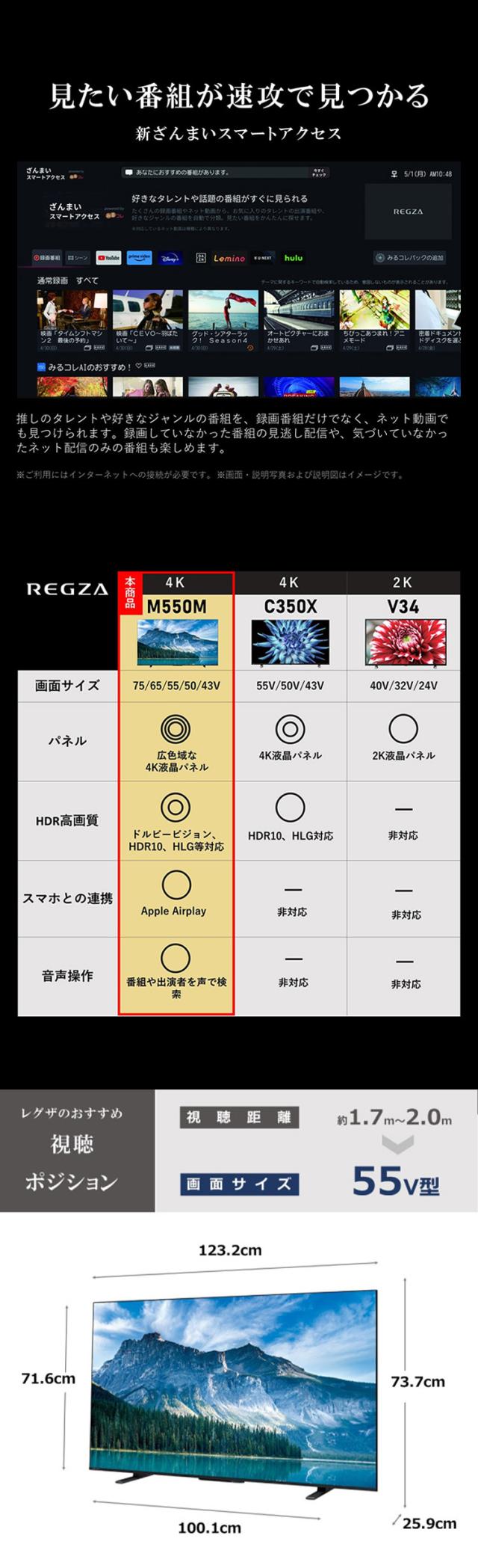 液晶テレビ 55型 東芝 55M550M REGZA レグザ 55V型 55インチ 地上・BS・110度CSデジタル 4Kチューナー内蔵