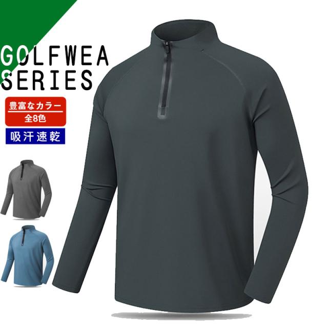 ポイント超超祭 爆売中 ゴルフポロシャツ メンズ 長袖 ハーフZIP ゴルフウェア 秋冬 トレーナー ハイネック シャツ 裏起毛 フリース 防寒 防寒着 紳士服