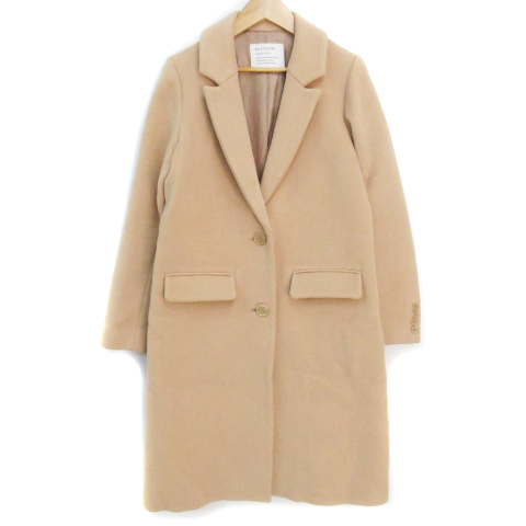 【中古】ベイフロー チェスターコート ロング丈 オープンカラー ウール シングルボタン 2 ベージュ /FF6 レディース