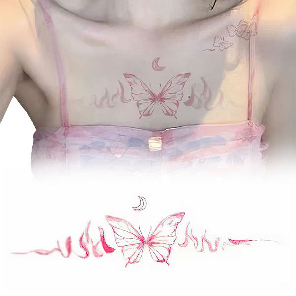 2枚セット タトゥーシール シールタイプ ピンク 蝶 トライバル インスタントタトゥー 刺青シール ステッカー CYREAM 送料無料