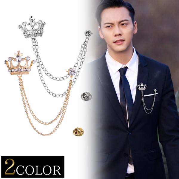 ブローチ 2カラー シルバー ゴールド 王冠 宝石 ビジュー フォーマル スーツ ビジネス 仕事 プレゼント 送料無料