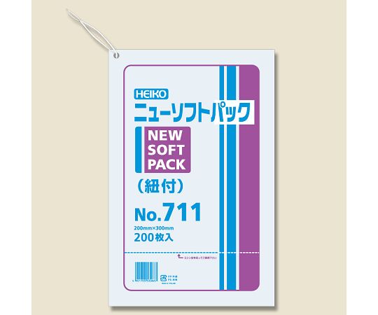 シモジマ HEIKO ポリ袋 半透明 ニューソフトパック 0.007mm No.711 紐付 200枚 1パック(200枚入) 006694711