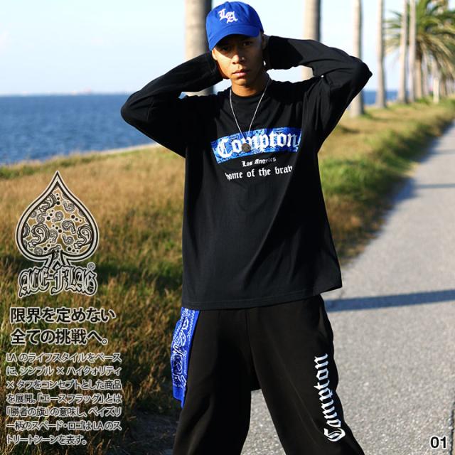 【48%OFF】ACE FLAG 上下セット 長袖 ブランド スケボー メンズ 春秋冬用 全2色 大きいサイズ エースフラッグ セットアップ ロンT 上下 Compton コンプトン ペイズリー b系 ヒップホップ ファッション ダンス ストリート系 ハイ 新作 AF-SE-LT-063