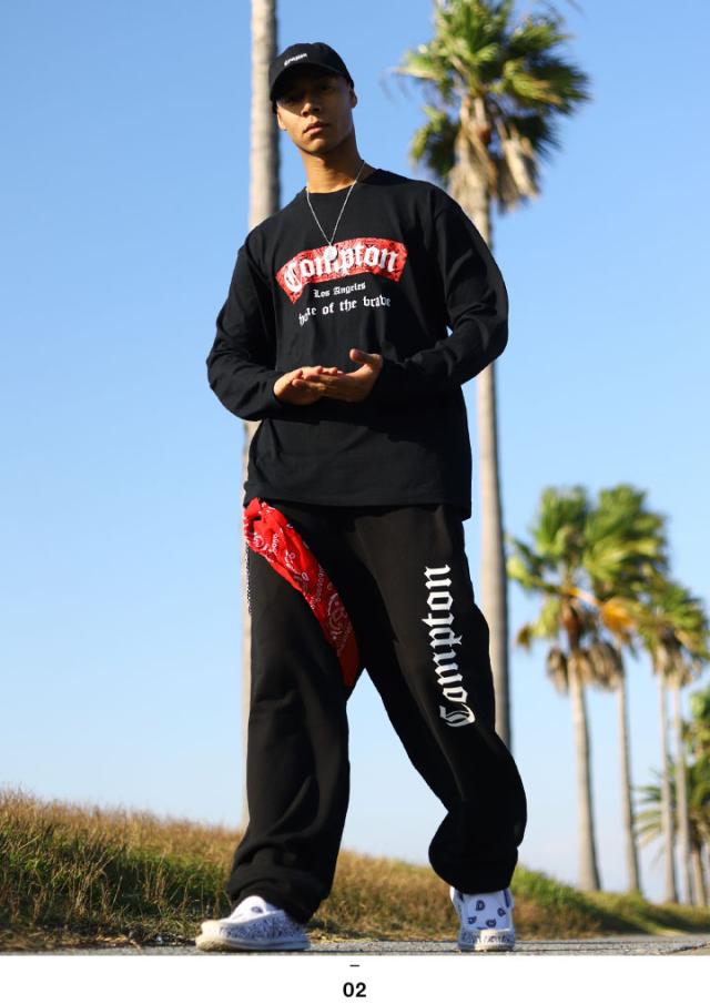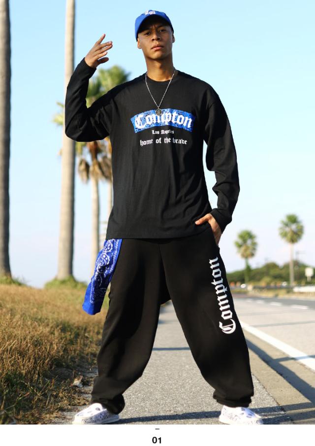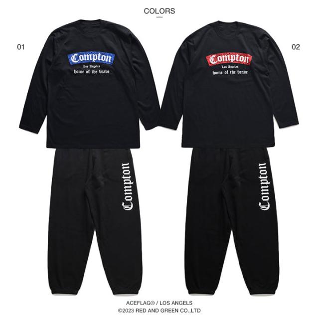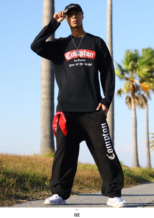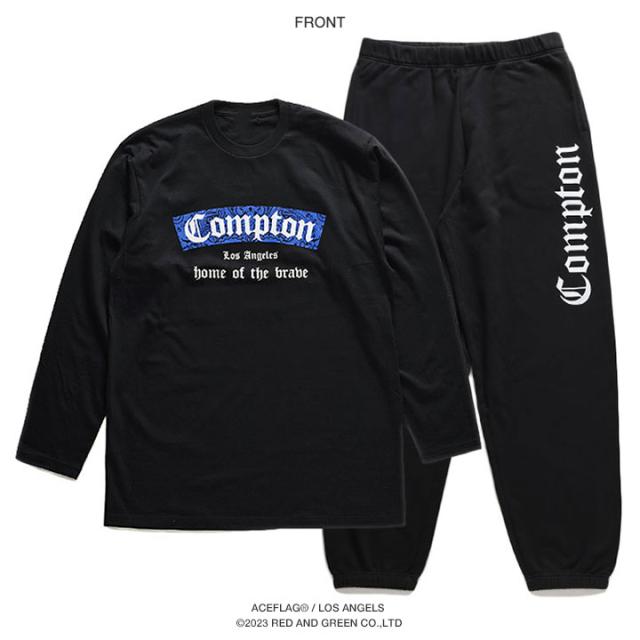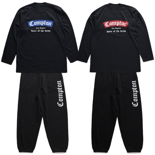 N.W.A.を輩出し、Straight Outta Comptonの舞台としても知られている「Compton」をドロップした(上)がロンT、(下)がスウェットロングパンツの上下セット。
