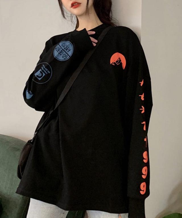 カジュアルなデザインロゴがラフ可愛いオーバーサイズトレーナー