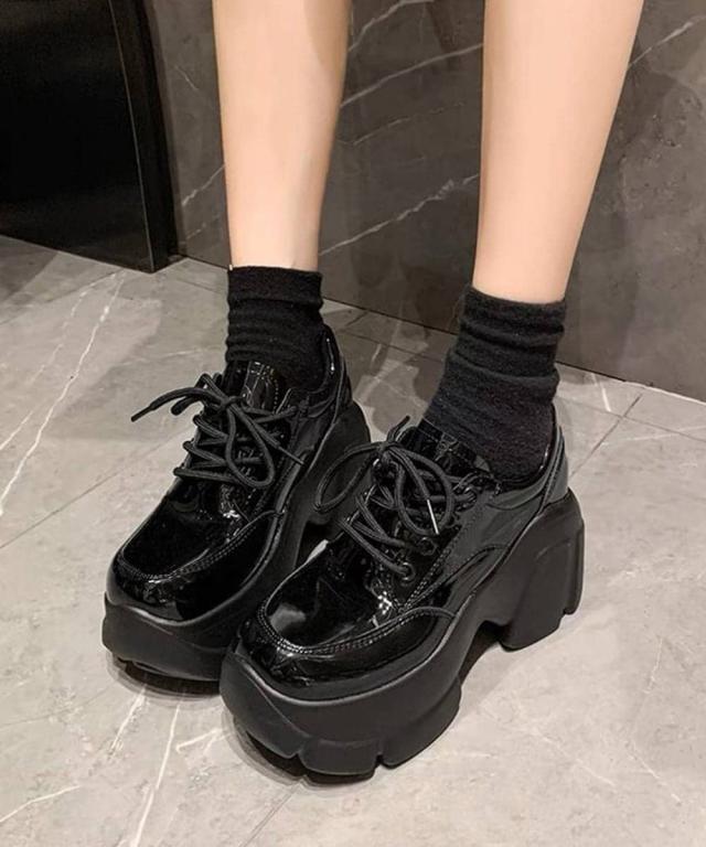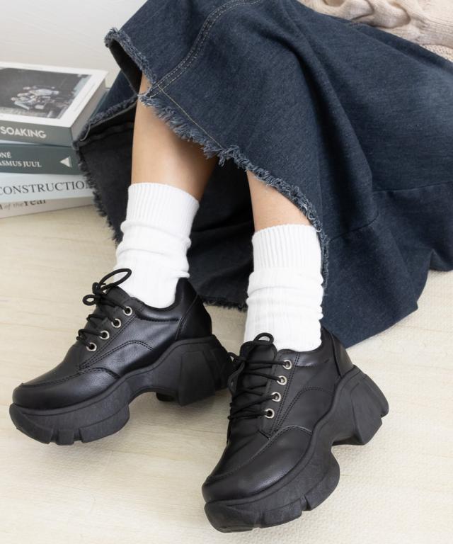 厚底ローファー韓国 レースアップシューズ