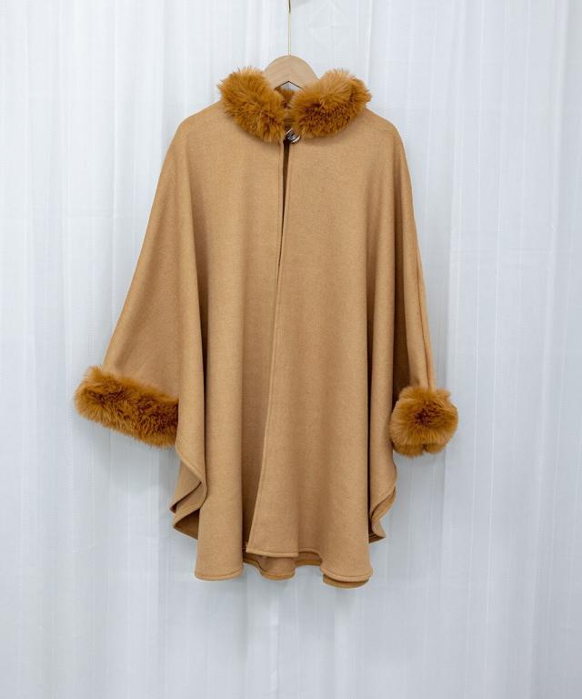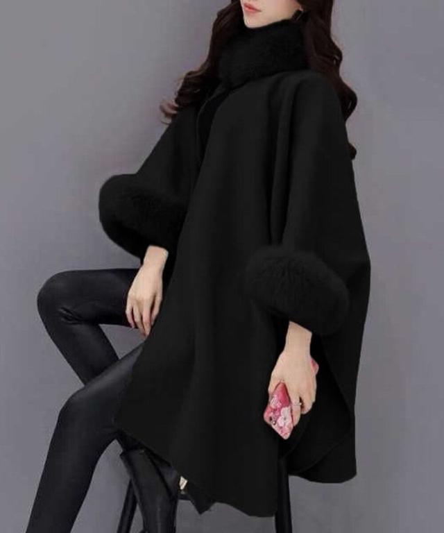 ファー付きケープコート レディース 韓国