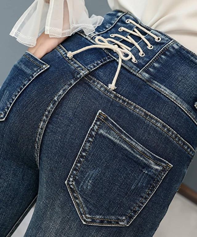 3列ボタンがおしゃれなハイウエストフィットデニムです。