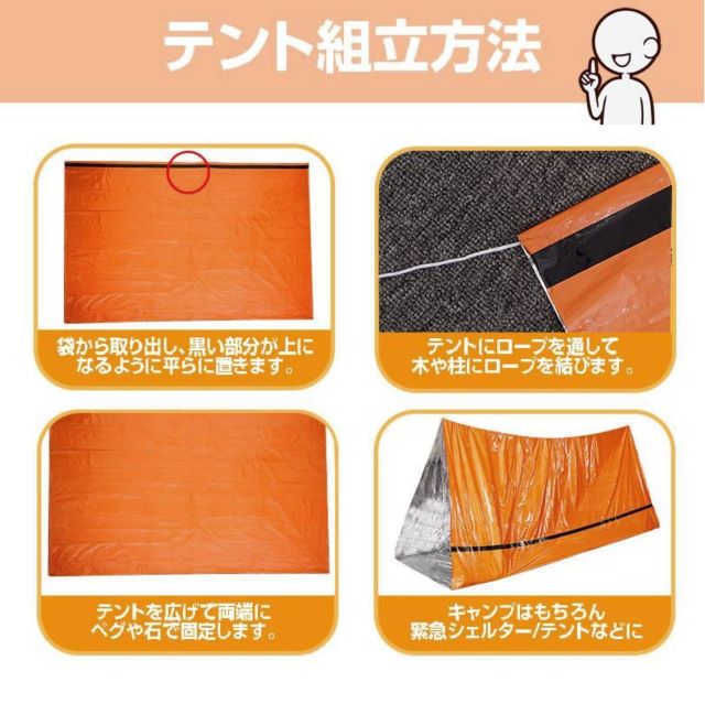 非常用 テント 防災グッズ 災害時やアウトドアでサッと設置可能 緊急 サバイバルテント 簡易シェルター 保温 防寒 オレンジ 防災 避難時 登山 折りたたみ 簡易テント折り畳み雨除け避難一人用suvtent